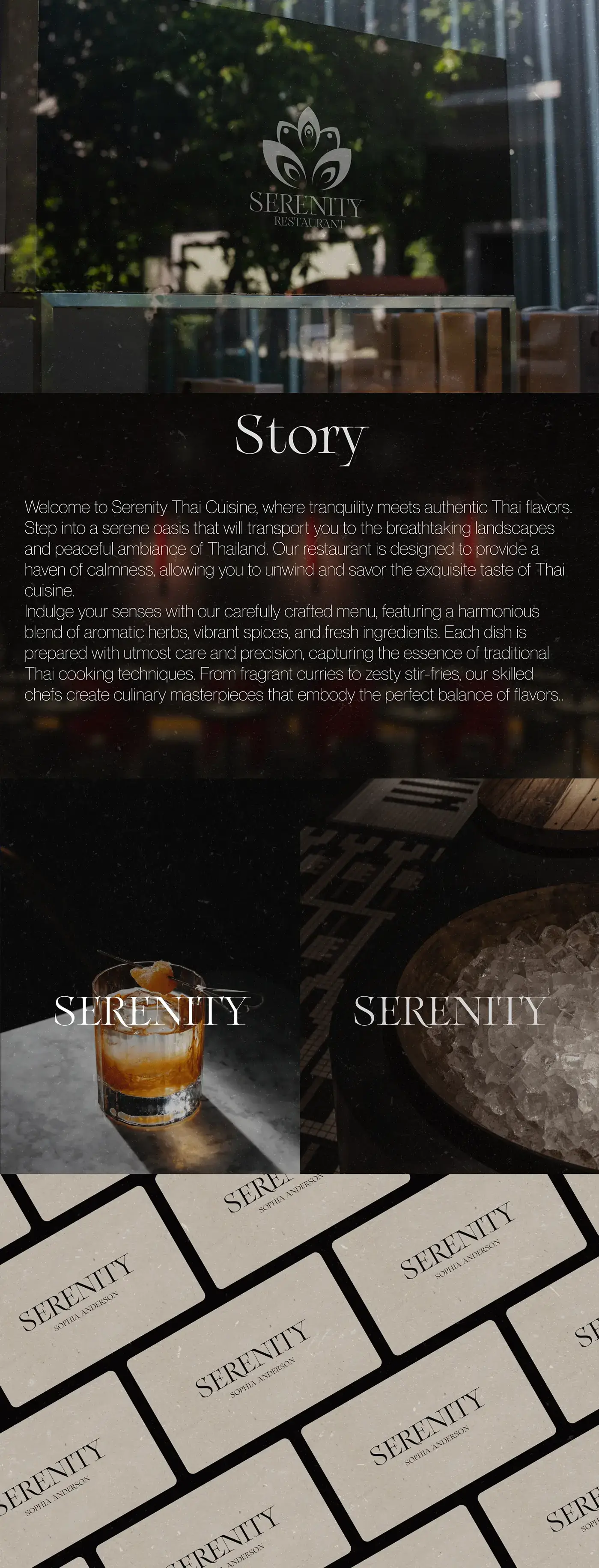 A Serenity Restaurant számára egy teljes körű arculati koncepciót dolgoztunk ki, amelynek középpontjában a letisztultság és a nyugalom állt. A márkanév önmagában is egy békés, harmonikus élményt ígér, ezért az általunk megálmodott vizuális világ finom színekkel, természetes textúrákkal és elegáns tipográfiával épült fel. A logó egy modern, mégis időtlen formát kapott, amely könnyedén illeszthető étlapokon, belső dekorációs elemekben és digitális felületeken is. Az arculat célja az volt, hogy a vendégek már az első pillantásra érezzék: itt nem csupán étkezésről van szó, hanem egy nyugodt, gasztronómiai élményről. A projekt során mockupokon keresztül mutattuk be, hogyan működne a brand a mindennapi használatban.